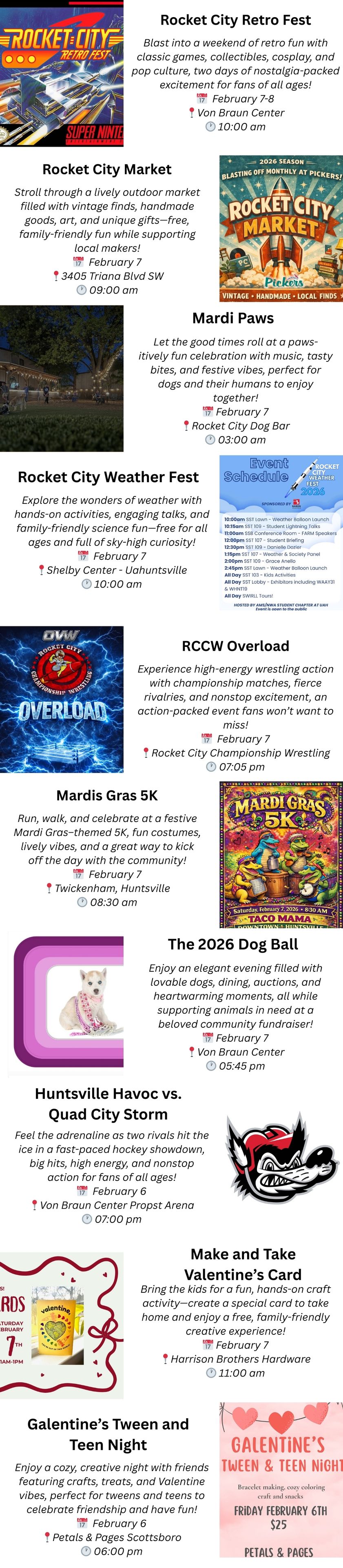 Thanks for reading Homely Huntsville! Share this with someone who loves the Good Company. Check out last Monday’s newsletter: 🏠 Huntsville Ranks #2 in U.S. + Mardi Gras 2026 Starts This Week
